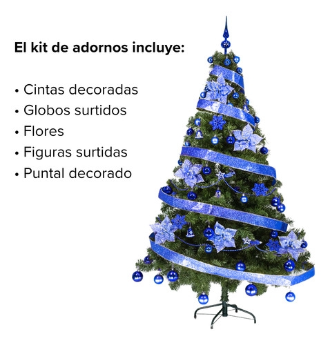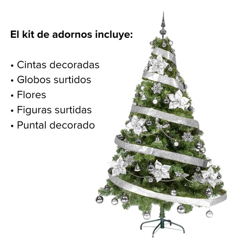 • IMPORTANTE: El kit de adornos cubre la cara frontal del árbol, la parte trasera del mismo se encuentra sin adornos (pensado para ubicar el árbol contra una esquina o contra la pared)