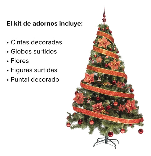 Arbol De Navidad Tronador Lujo 1,80mts Con Adornos Kit X60