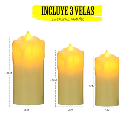 Velas Set X3 Velon Luz Led Calida Llama Efecto Fuego A Pilas Calido