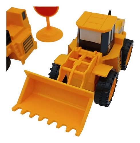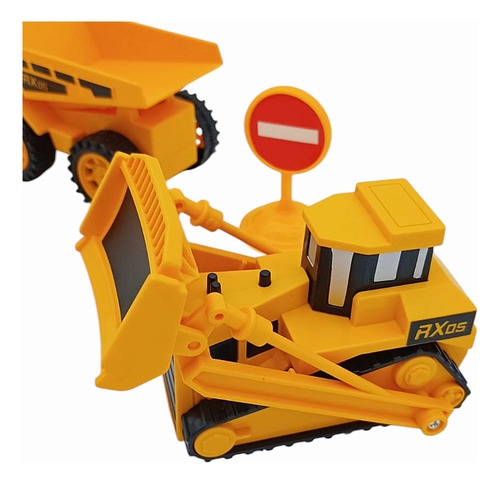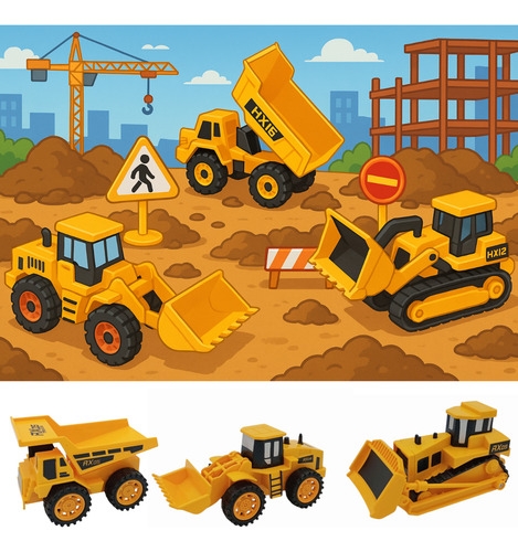 • Incluye una excavadora, un camión de volteo y una topadora.