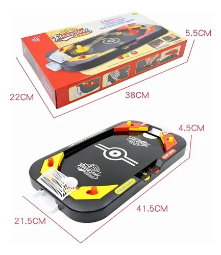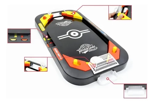 | Componentes del juego | 2 arcos,2 contenedores,2 discos,2 mazas,2 pelotas,4 flippers,Tablero 2 en 1 con anotador de puntaje |