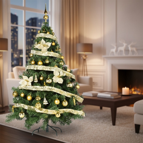 • IMPORTANTE - El kit de adornos cubre la cara frontal del árbol, la parte trasera del mismo se encuentra sin adornos (pensado para ubicar el árbol contra una esquina o contra la pared. En caso de querer más adornos, consultar por precio)