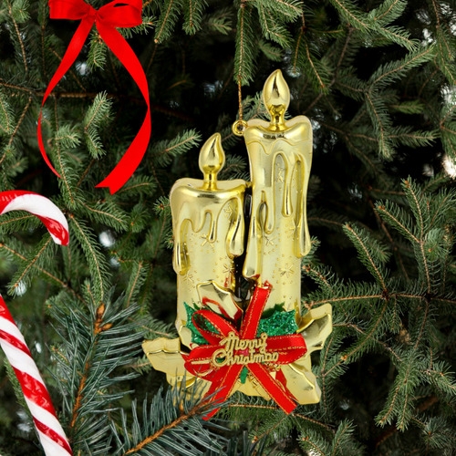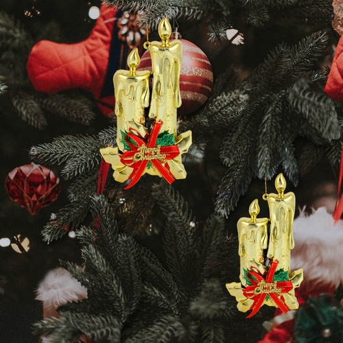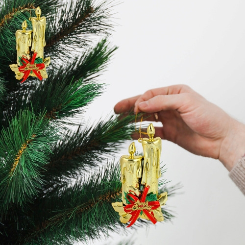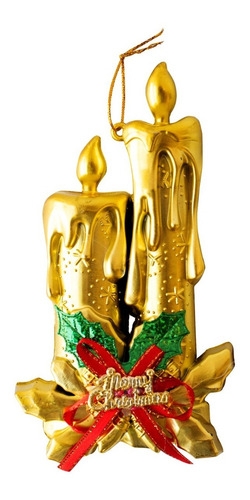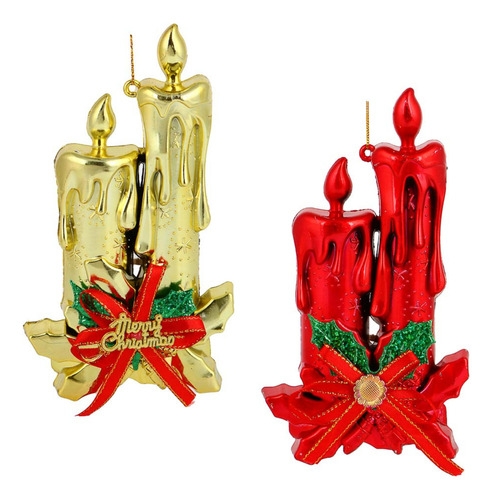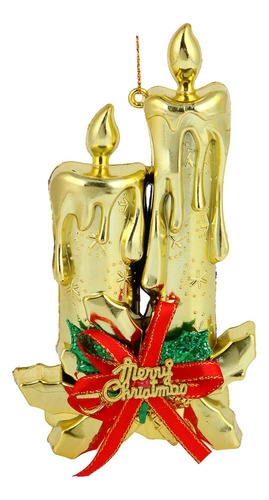 Adorno Navidad Colgante Navideño Con Velas Y Moño 17cm