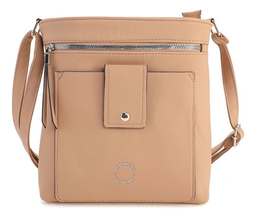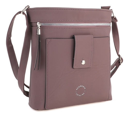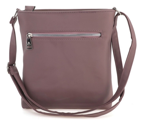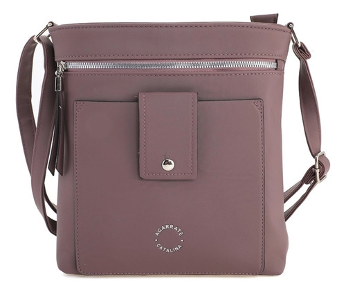 • Amplio compartimento principal con cierre metálico, bolsillo delantero con solapa y broche a presión