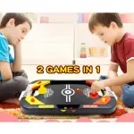 | Componentes del juego | 2 arcos,2 contenedores,2 discos,2 mazas,2 pelotas,4 flippers,Tablero 2 en 1 con anotador de puntaje |